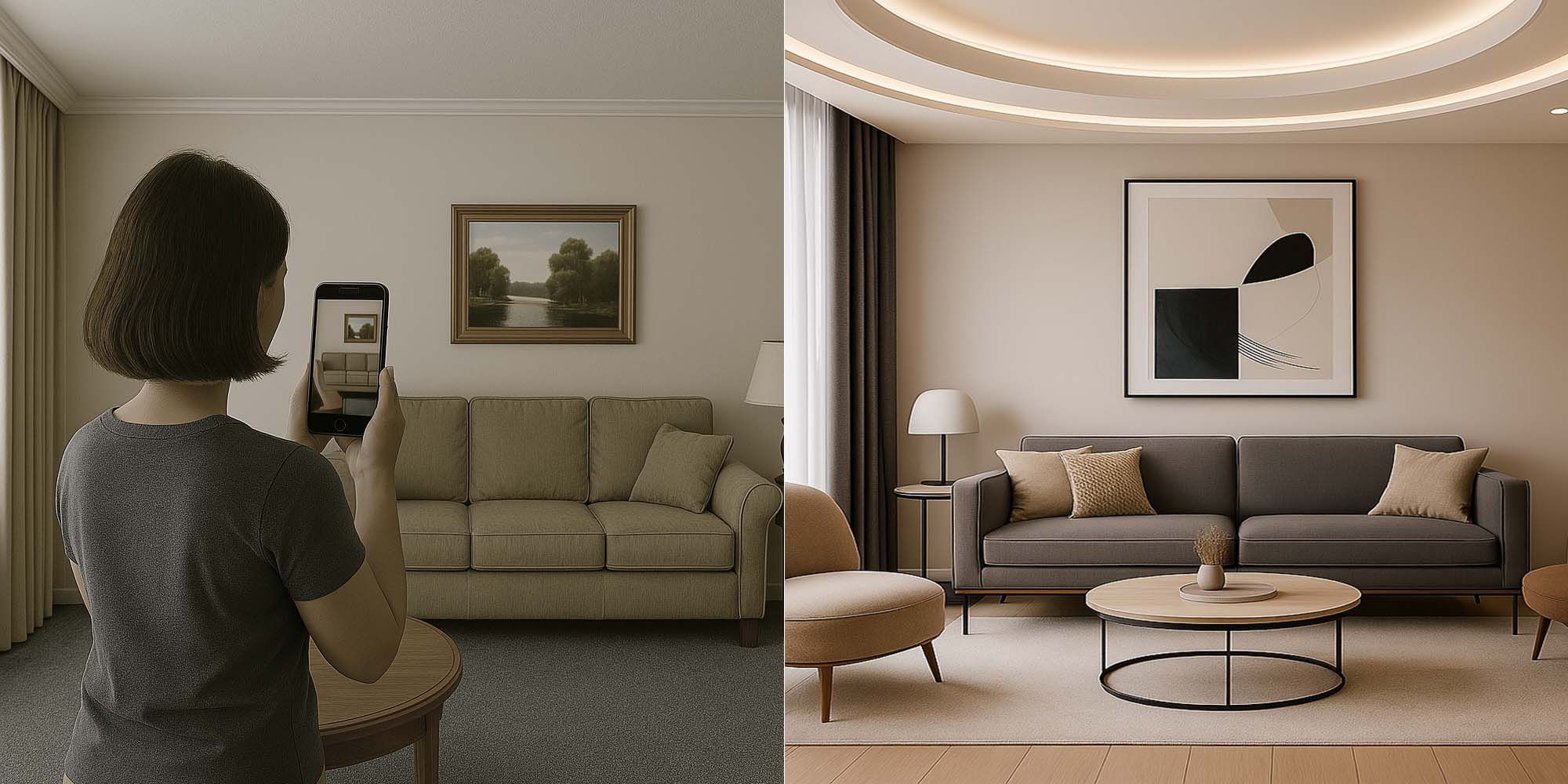 A fast, realistic refresh that keeps your layout and structure. Ideal for quick makeovers, listing photos, and moodboards.